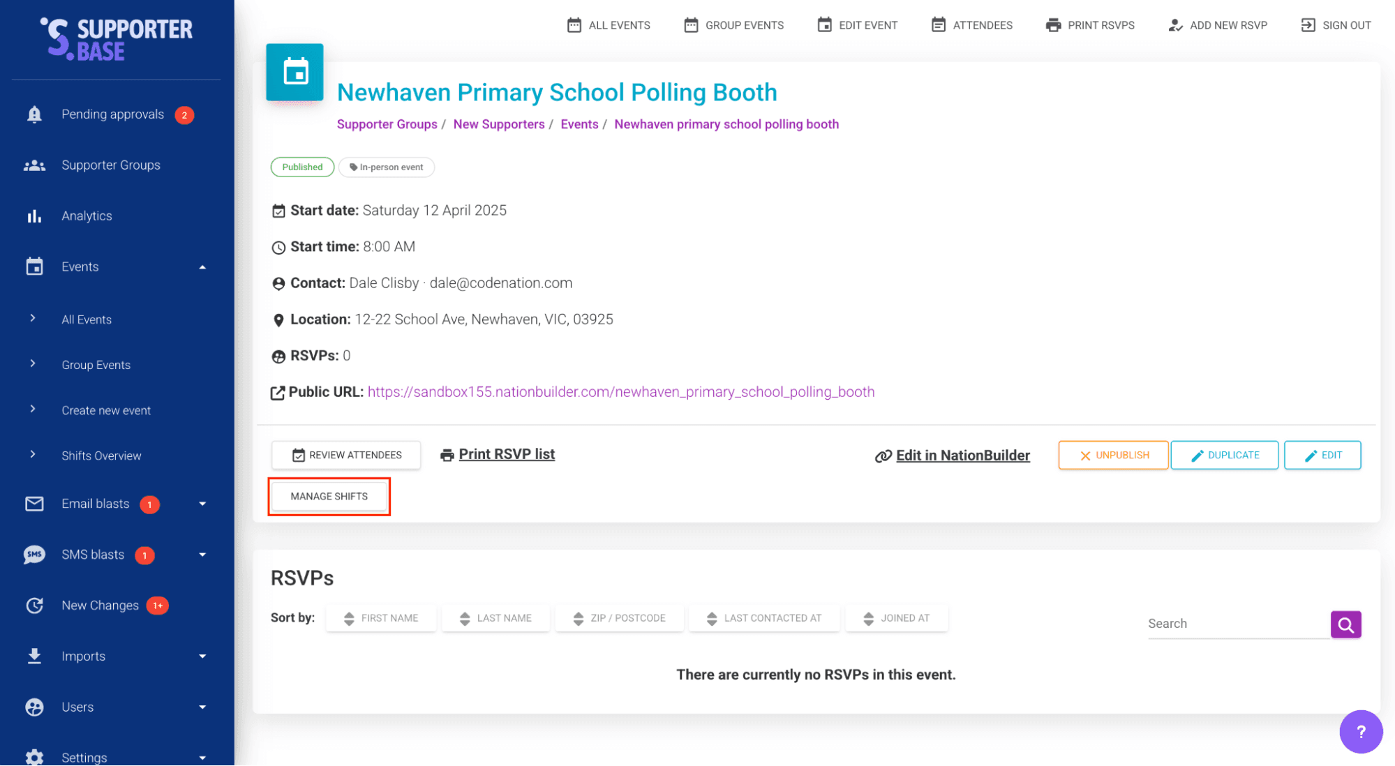 - Edit shifts or roles at any time (with the option to notify supporters of changes)
