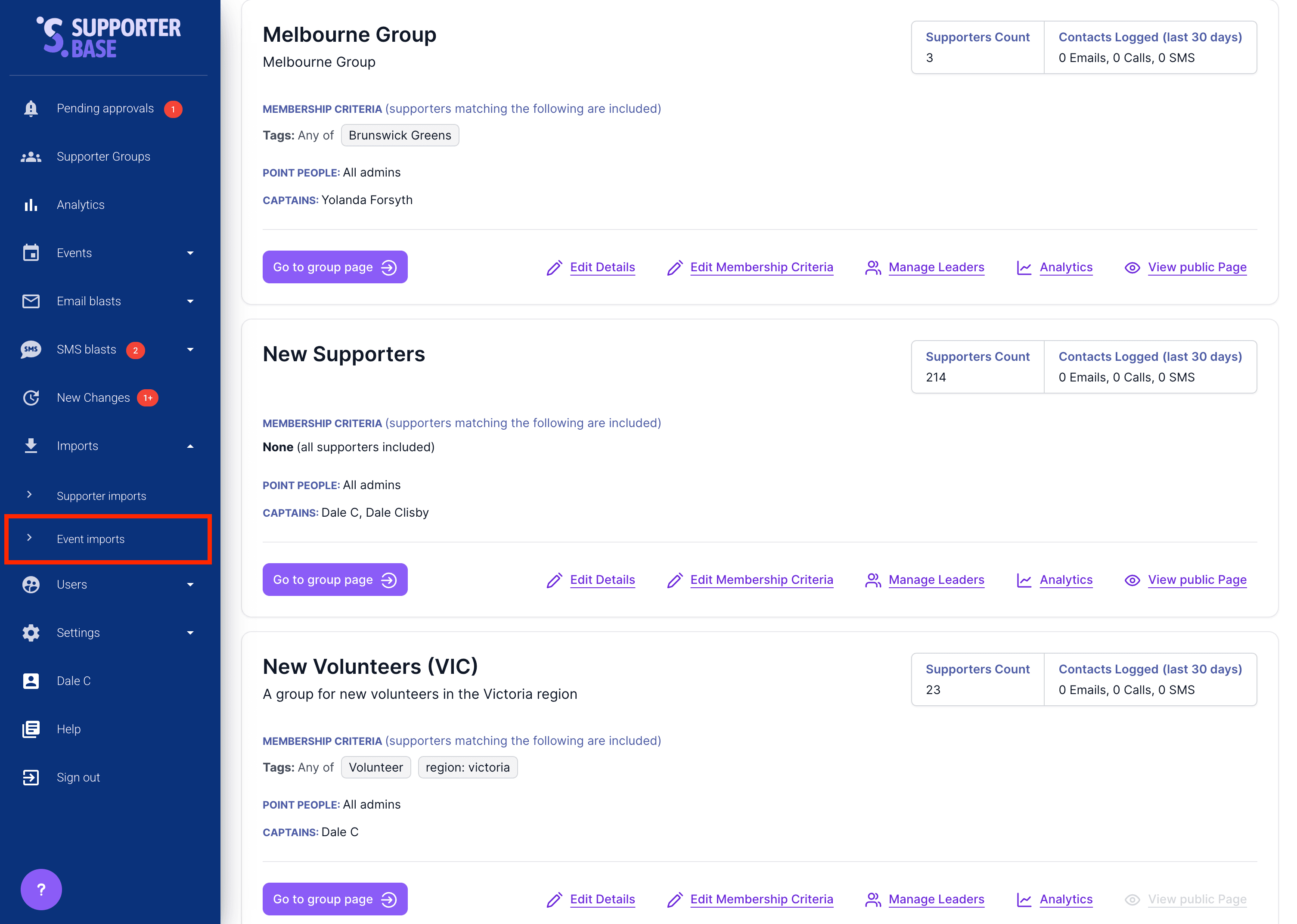 Create an event as normal in SupporterBase, or use the event import tool for bulk creation.