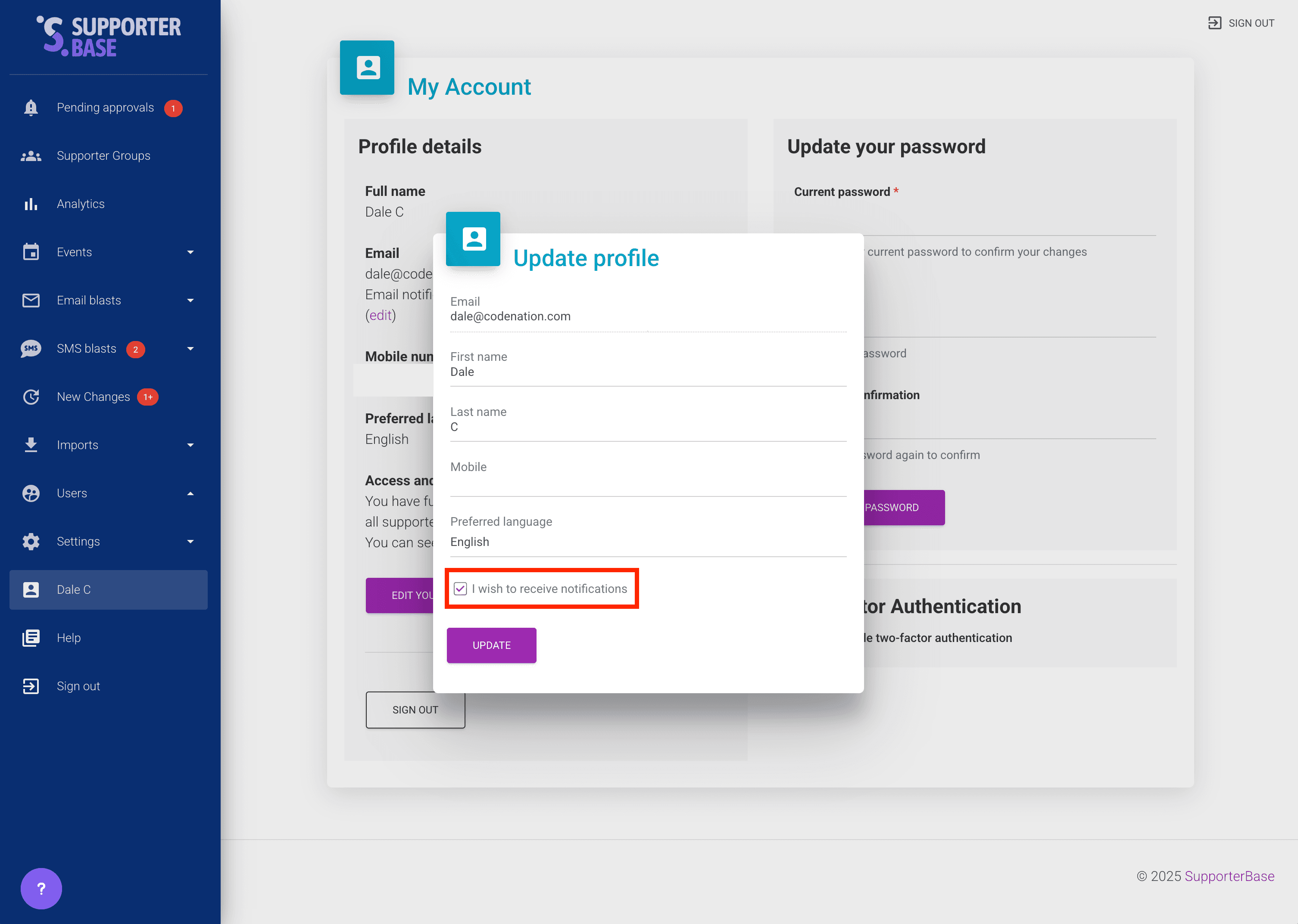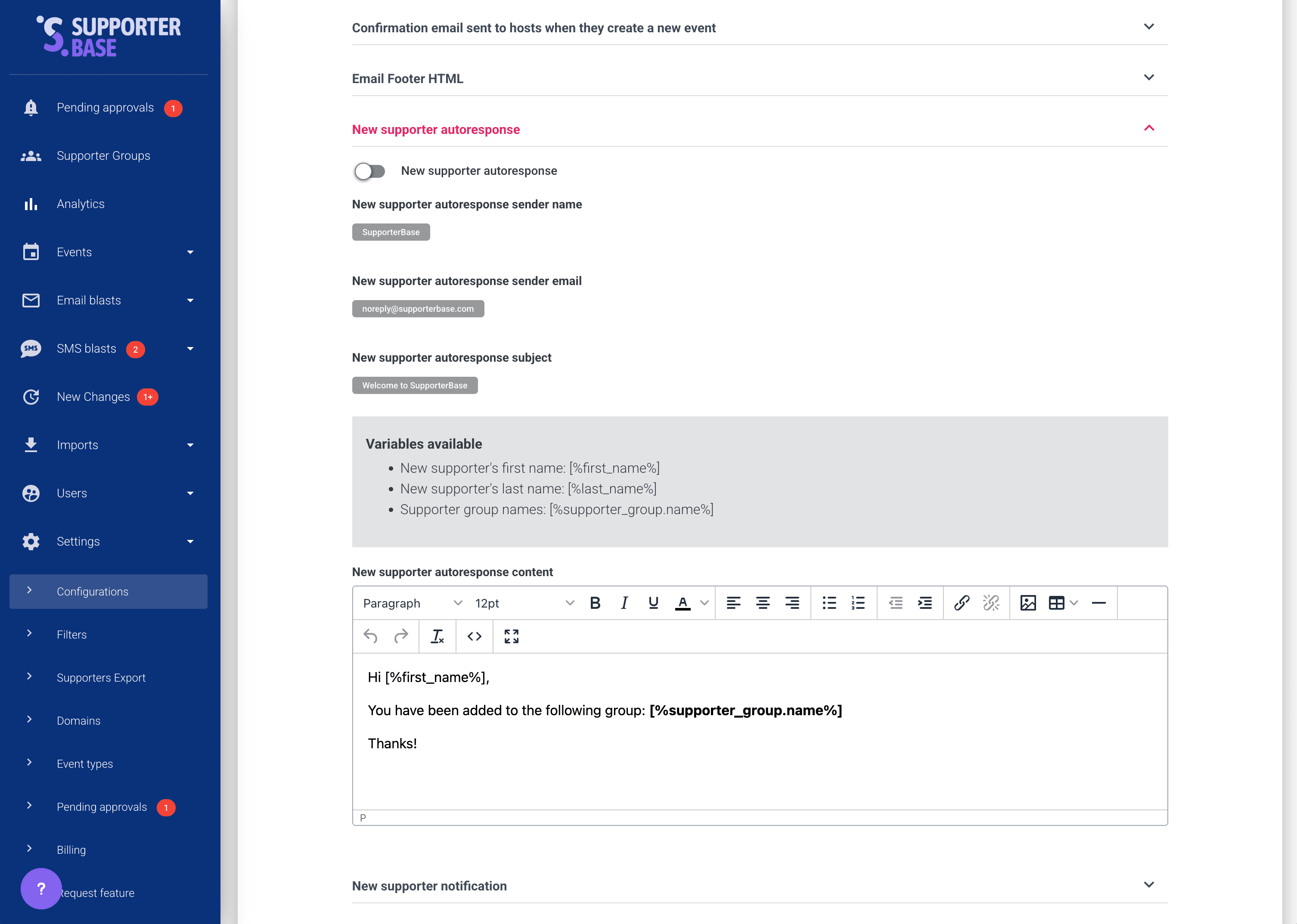 Enabling new supporter notifications