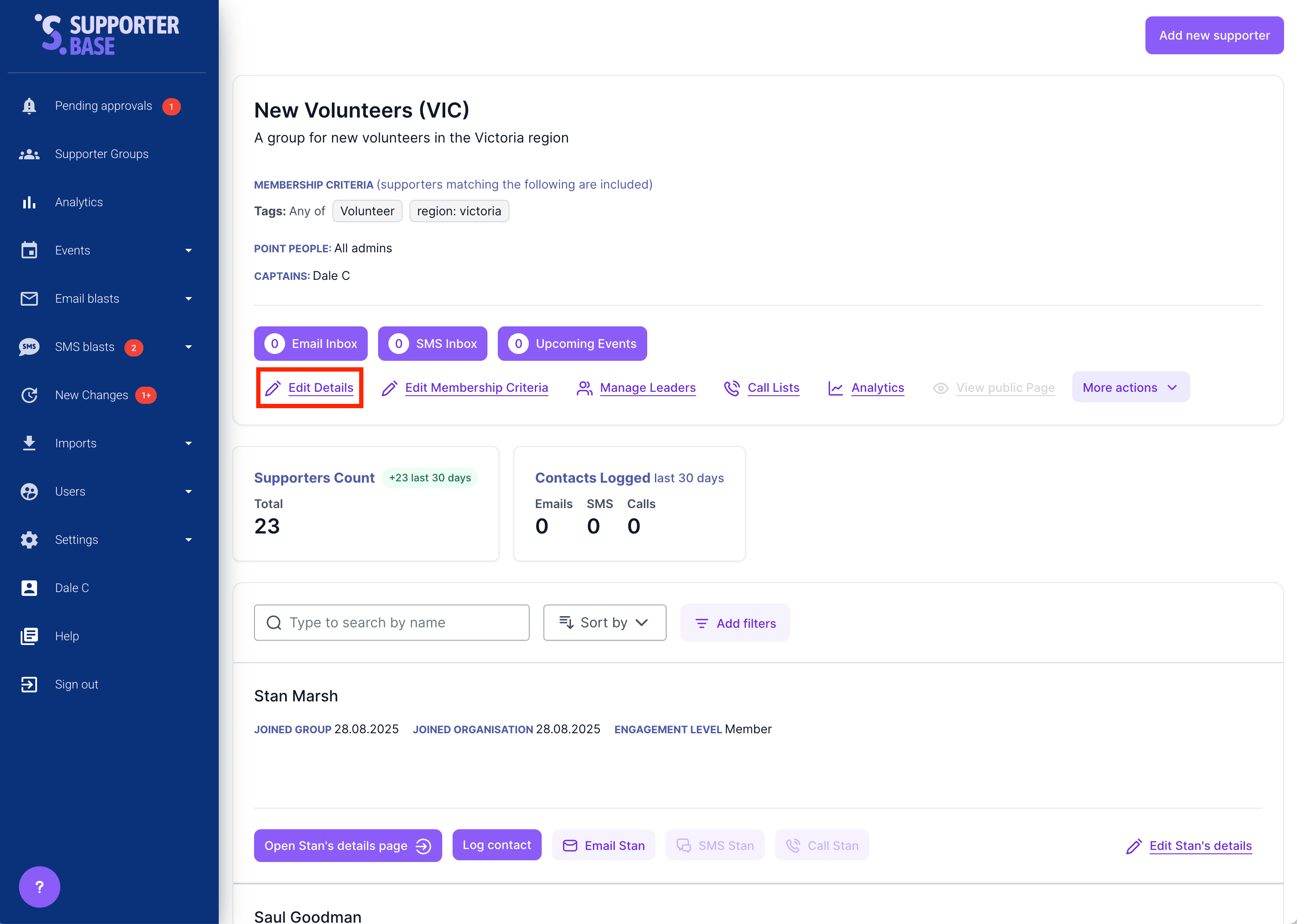 Track and notify group leaders when new supporters join
